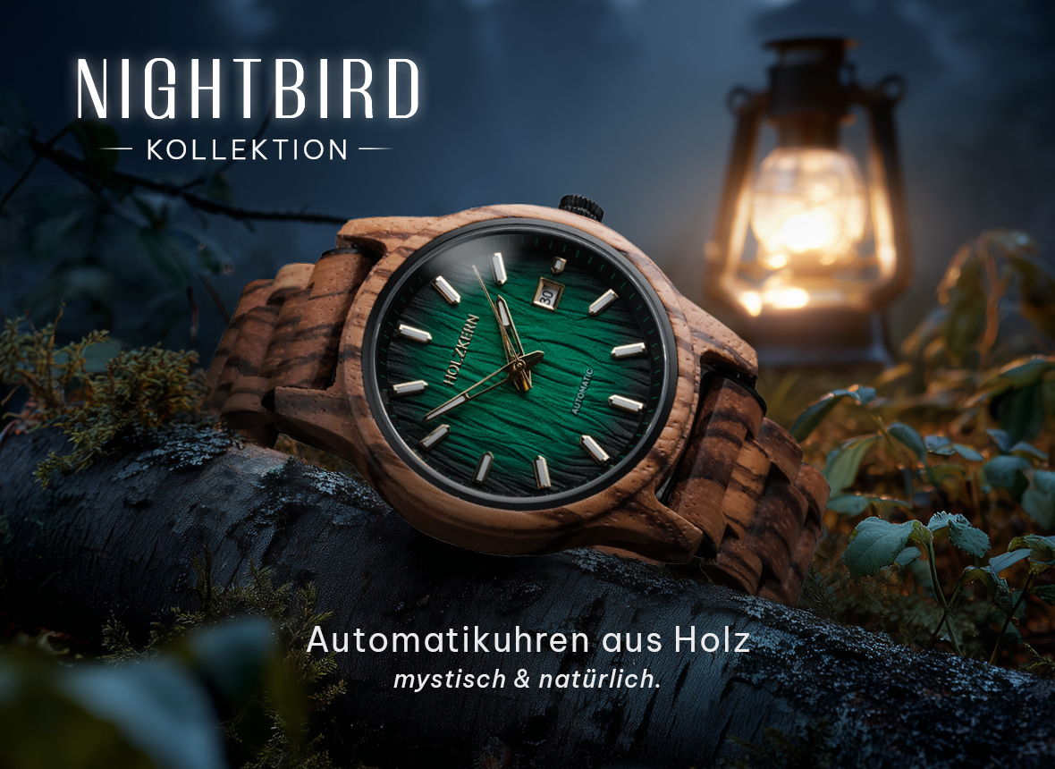 Nicht zuletzt schafft es HOLZKERN durch eine spezielle Verarbeitung dieser Materialien, die Gehäuse der Uhren dennoch sehr schlank zu gestalten und bietet mit klassisch-edlen Design eine stilvolle und sehr besondere Alternative zu herkömmlichen Armbanduhren aus Metall.
